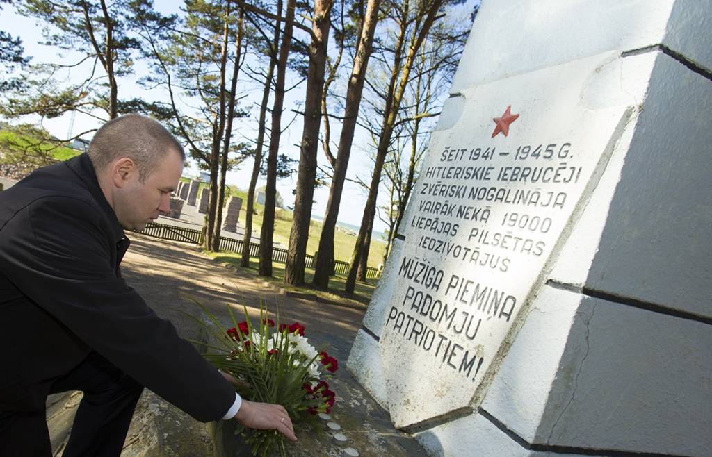Piektdien, 8. maijā, Nacisma sagrāves un Otrā pasaules kara upuru piemiņas dienā, pašvaldības vadība nolika ziedus arī piemiņas vietās Liepājā.