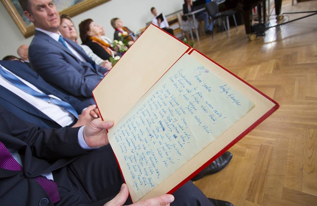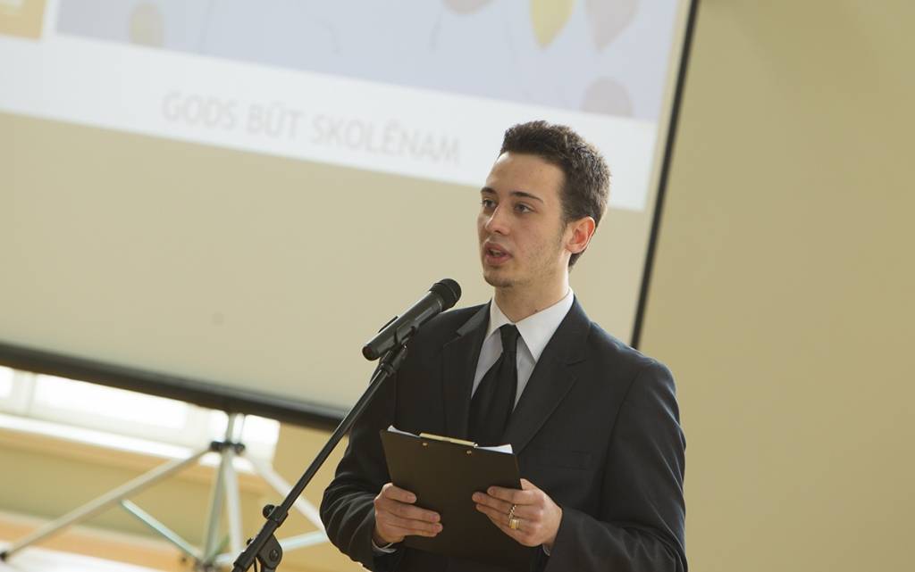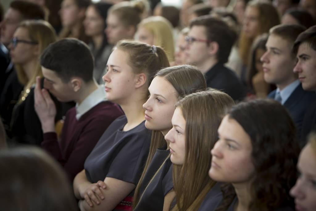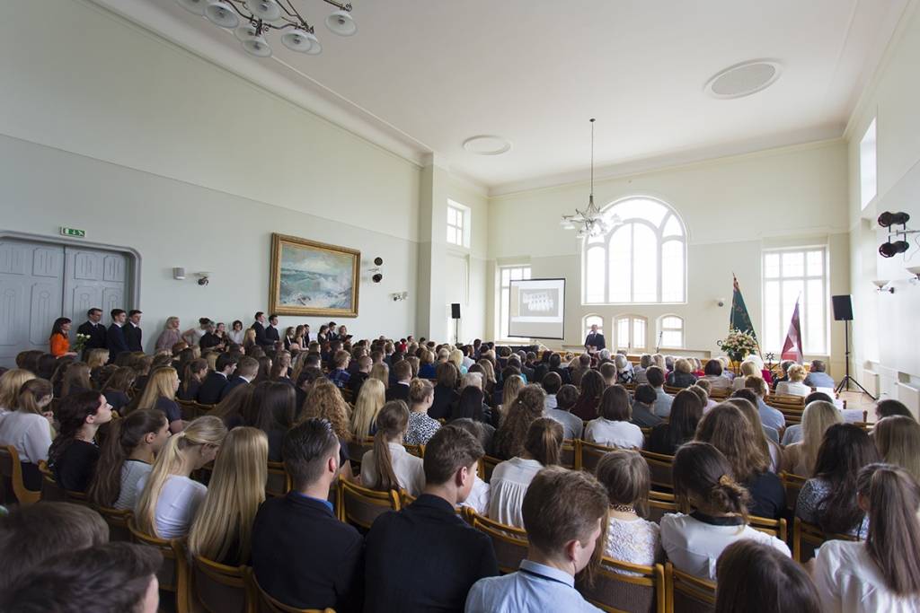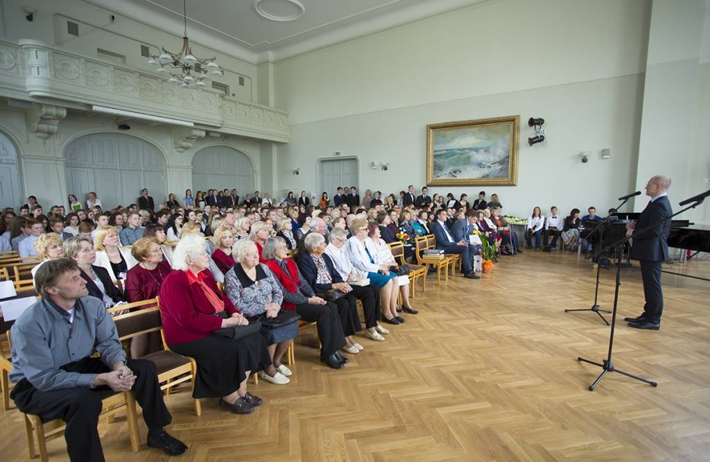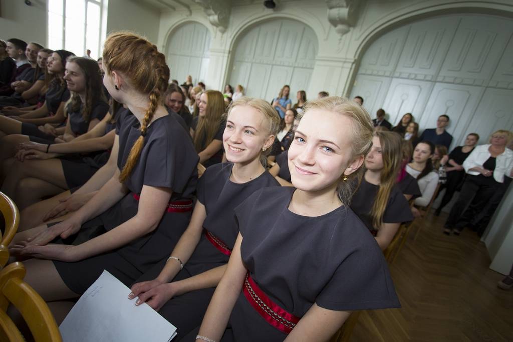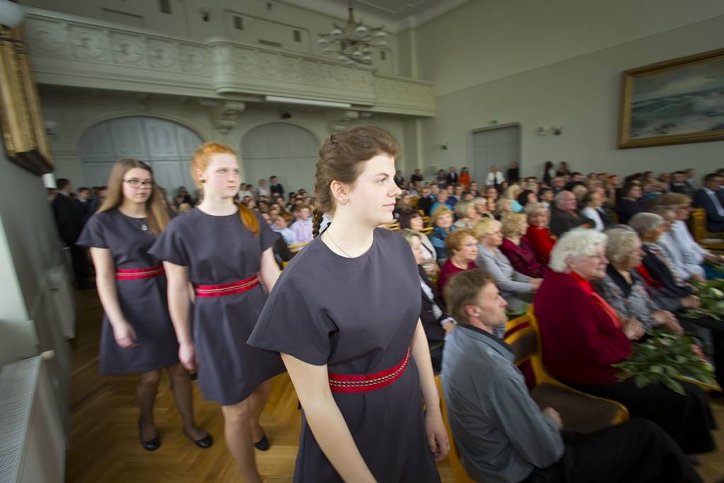 Piedāvājam foto no svinīgā pasākuma Liepājas Valsts 1.ģimnāzijā, kas veltīts tās 95 gadu jubilejai.