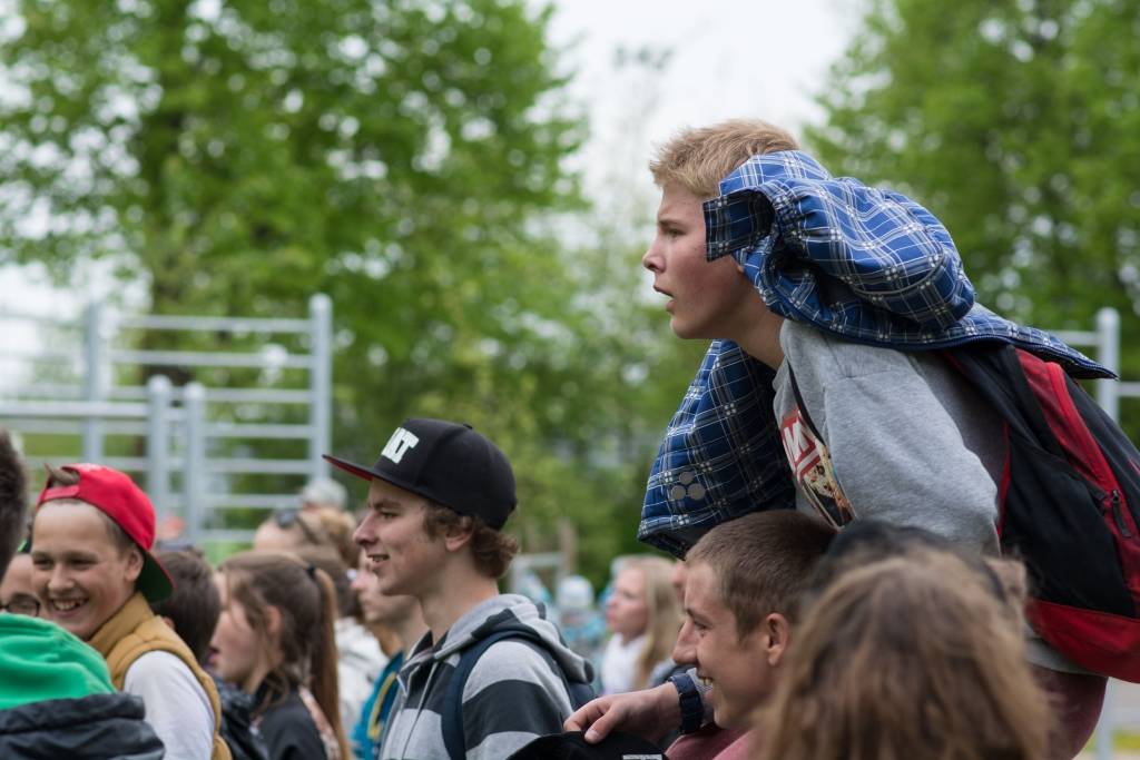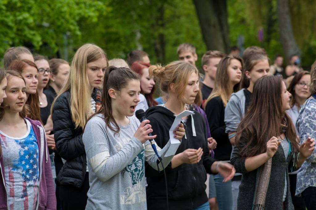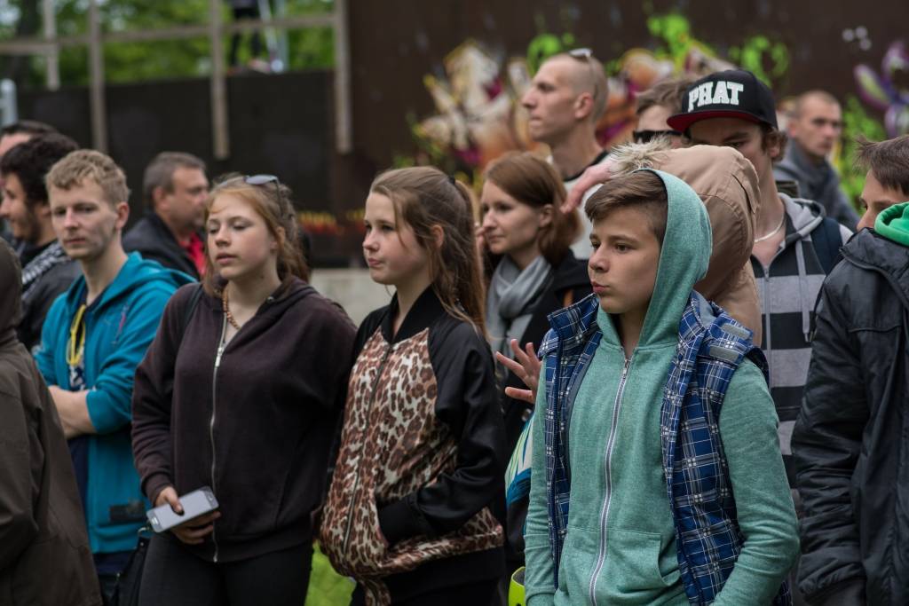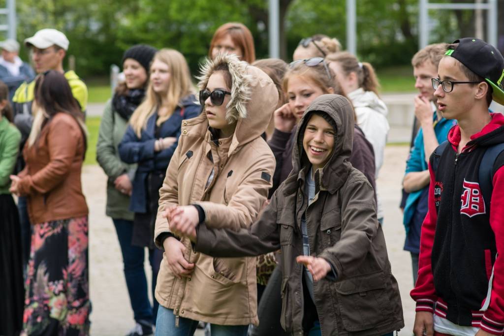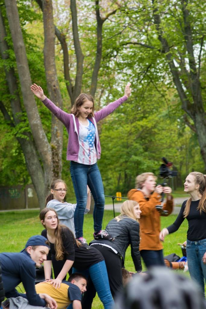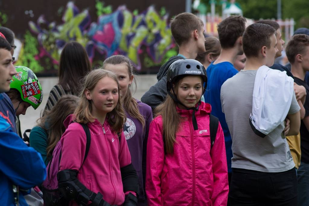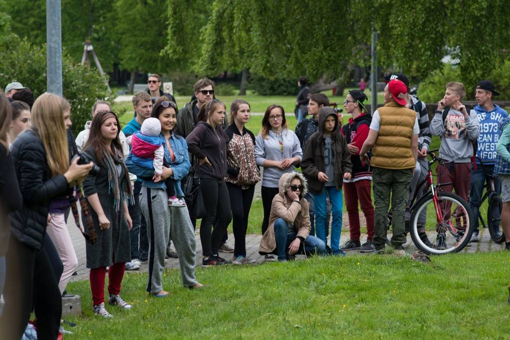 Pirmdien pie skeitparka Liepājā notika Eiropas Savienības jauniešu apmaiņas projekta dalībnieku uzstāšanās.